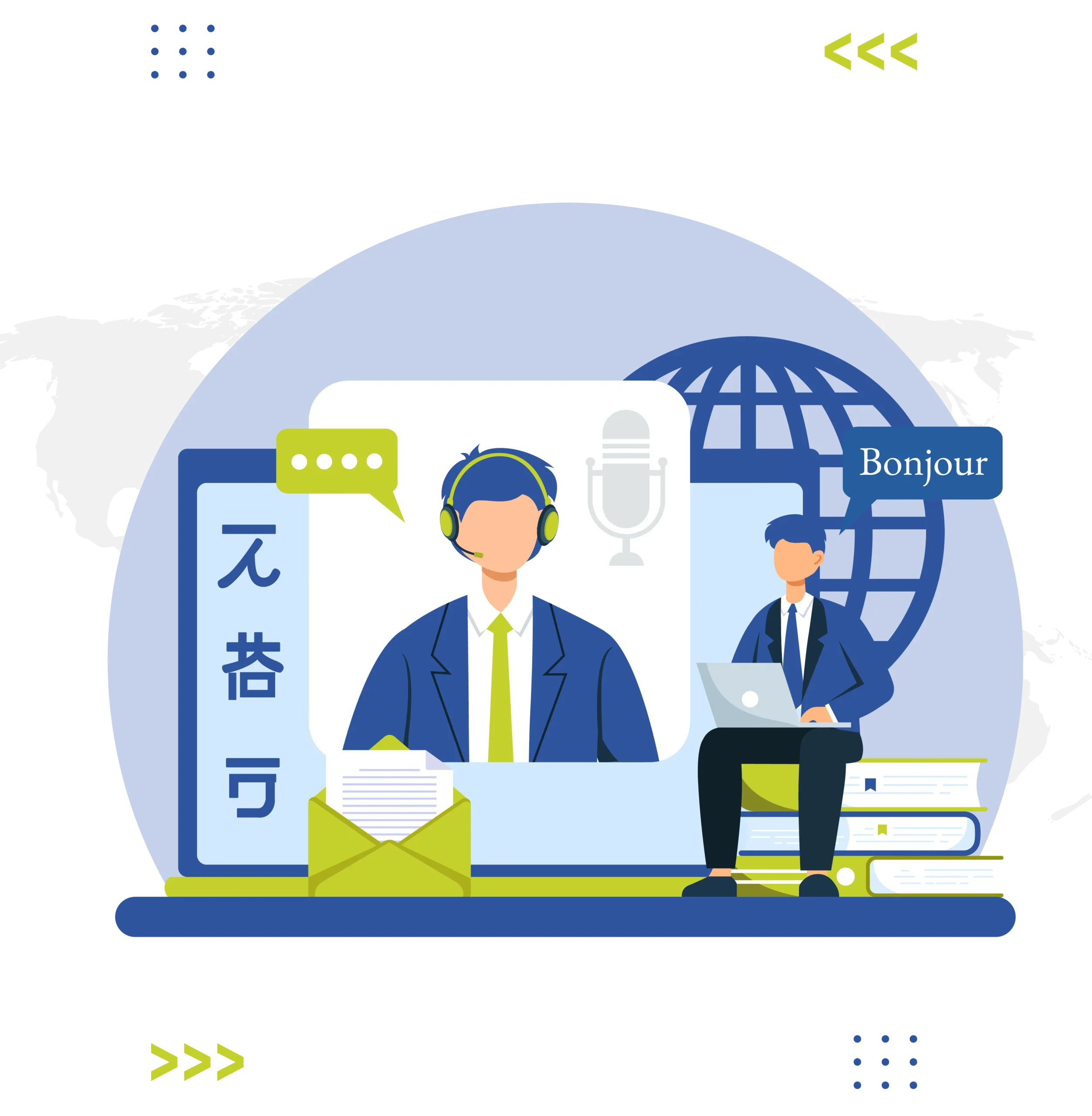 - تحديد التفاصيل: يحدد العميل اللغة المطلوبة، نوع الترجمة، التكلفة، وموعد التسليم.