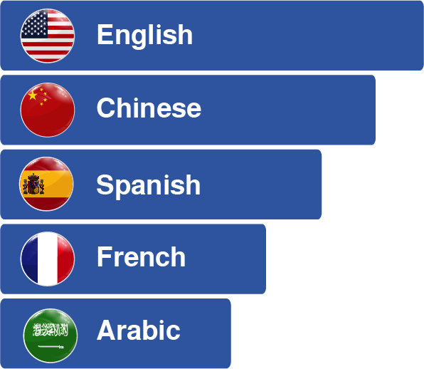 اللغة العربية تأتي في المرتبة الخامسة من بين أكثر اللغات تحدثًا في العالم. يتحدث بها أكثر من 420 مليون شخص، ويعتبرها العديد من المسلمين لغة مقدسة نظرًا لكونها لغة القرآن الكريم.